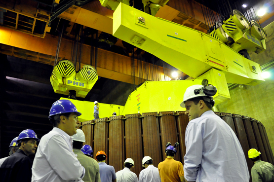 Técnicos e ingenieros de la Itaipu Binacional, realizaron en la mañana de este miércoles, el retiro del rotor de la Unidad Generadora número 6 de la entidad. La pieza es la tercera de gran porte retirada durante el proceso de desmontaje total de la máquina a causa de una fisura en el ala 11 del anillo superior de la turbina, detectada en el mes de setiembre de 2010.
